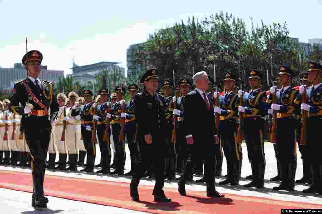 美国国防部长马蒂斯6月26日至28日访问中国,先后会晤了中国国防部长魏凤和与中国国家主席习近平。这次访问正值美中紧张关系加剧之际。目前两国在贸易、台湾和南中国海等问题上都有摩擦。 马蒂斯离开北京后访问了首尔,然后前往东京,就朝鲜去核等问题分别与韩、日两国国防官员举行会谈。
