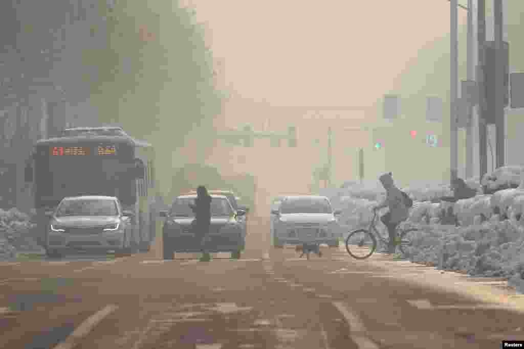 2018年1月30日,江苏省南京市污染严重的一天,汽车在公路上行驶。