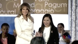 周三,第一夫人梅兰妮亚川普在副国务卿汤姆·香农(Tom Shannon)的陪同下来到国务院,出席国际妇女勇气奖颁奖典礼。梅兰妮亚川普为今年的十三名获奖妇女颁奖,表彰他们在人权、性别平等以及促进和平等方面做出的杰出贡献。