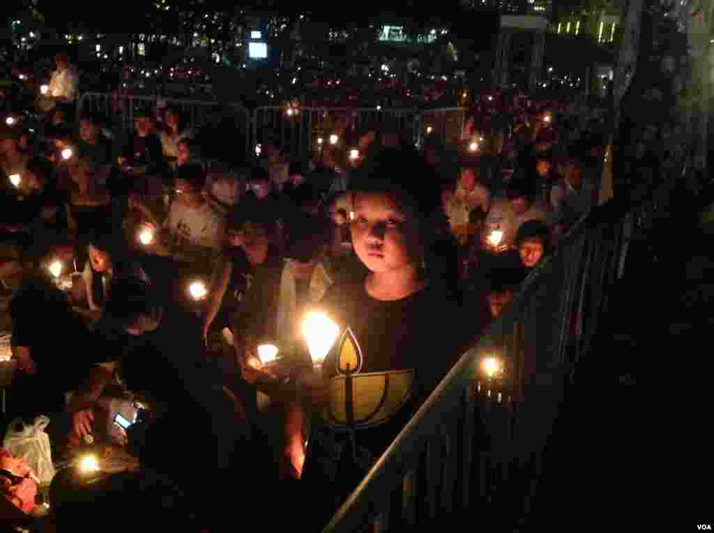 2015年6月4日数以万计港人在维园举行纪念六四烛光晚会。以下是美国之音记者海彦从现场拍摄的一组照片。