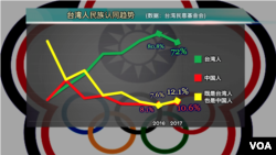 台湾民意基金会日前公布“台湾认同与2017台北世大运”民调结果。受访者对“中华台北”这个名称,有6.5%非常喜欢,35.1%还算喜欢,28.7%不太喜欢,19.1%一点也不喜欢,10.6%没意见、不知道、拒答。换言之,有四成八的台湾人不喜欢以“中华台北”名称参与,但有四成二的人喜欢。除了名称的问题之外,这份最新的民调结果也显示,台湾民众在民族认同这个问题上,有72%自认台湾人,10.6%认为自己是中国人,12.1%认为自己既是台湾人也是中国人,5.3%没意见、不知道或不愿意回答。值得注意的是,和台湾民意基金会去年五月的民调结果比较,台湾人认同下降了8.8 个百分点,中国人认同上升2.5 个百分点,双重认同者也上升4.5 个百分点。2017 年的台湾人认同倒退回2011 年左右的水平,专家认为,这是一个非常不寻常的现象,值得做更进一步的探讨。
